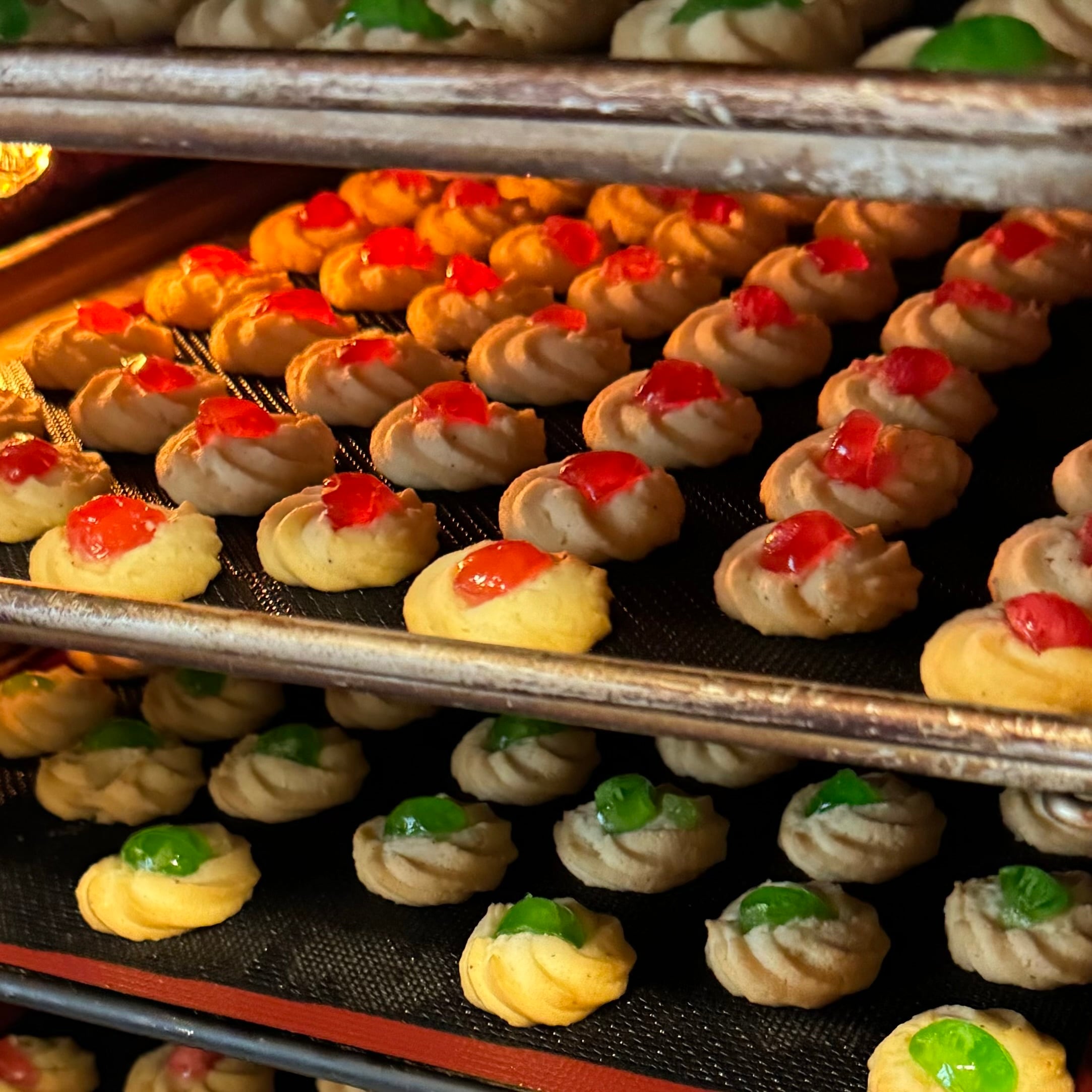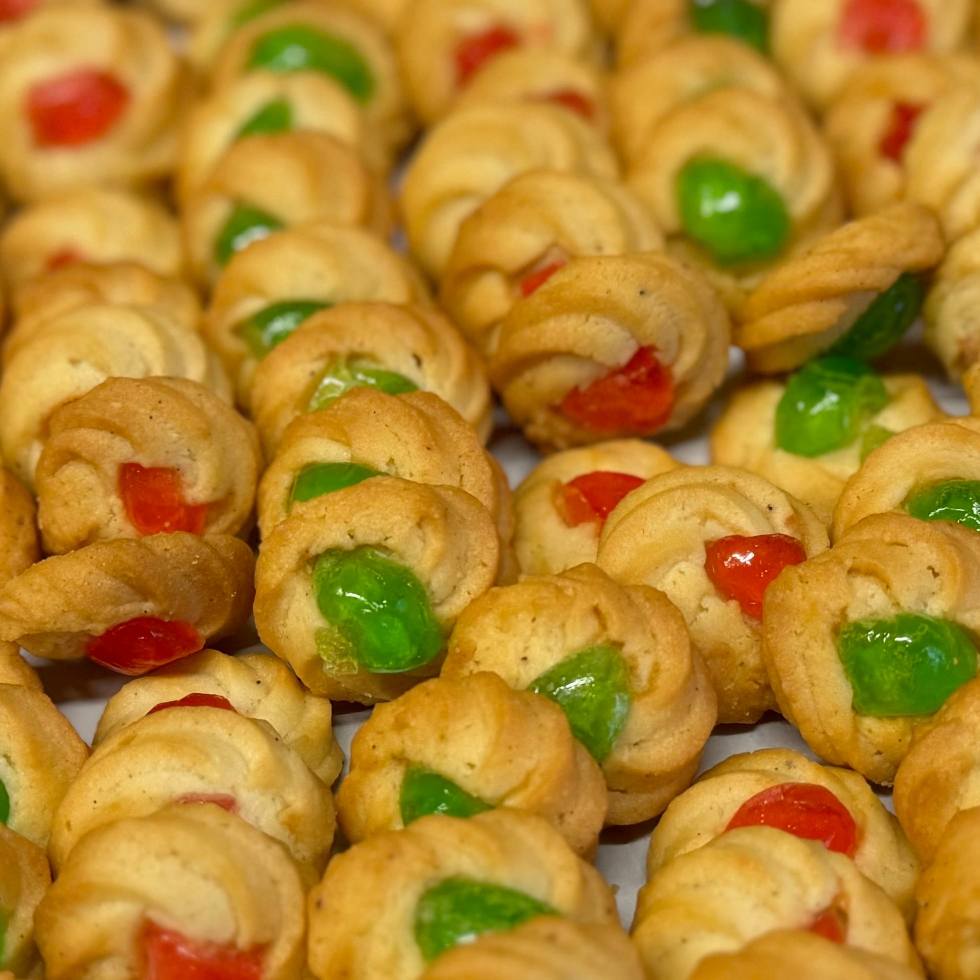 小麦粉(国産)、バター、砂糖、ドレンチェリー(チェリー、水飴)、卵白、アーモンドパウダー、塩/香料、明礬、酸味料、着色料(赤色102号・青17・黄4)