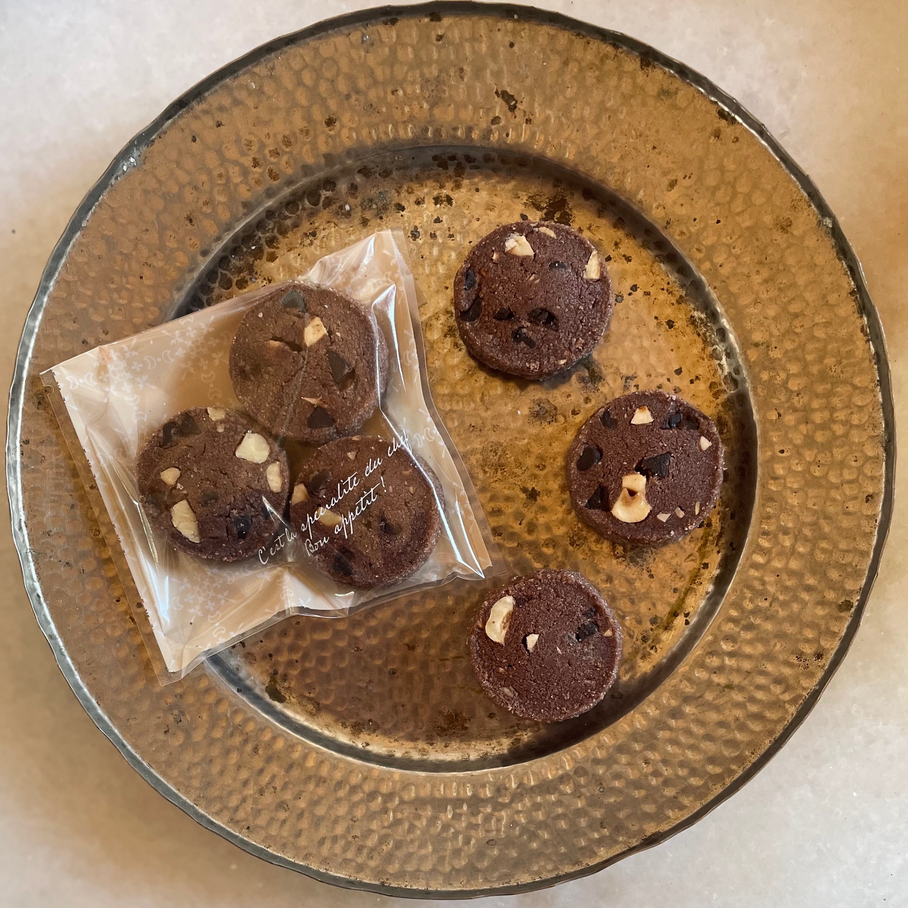 小麦粉(国産)、バター、砂糖、ヘーゼルナッツ、チョコレートチップ(カカオマス、カカオバター、ブドウ糖)、ココアパウダー、卵黄、塩