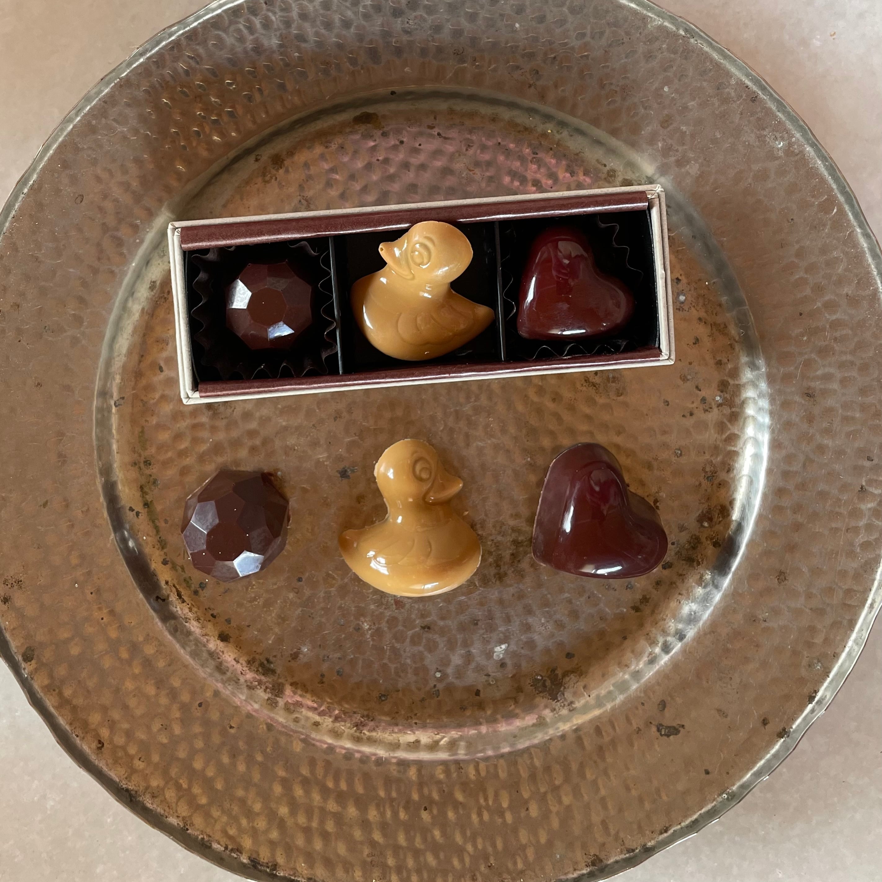 ブロンドスイートは、シンプルなスイートチョコレートのガナッシュを、ブロンドチョコレートでコーティング。かわいいアヒルさんの形です。