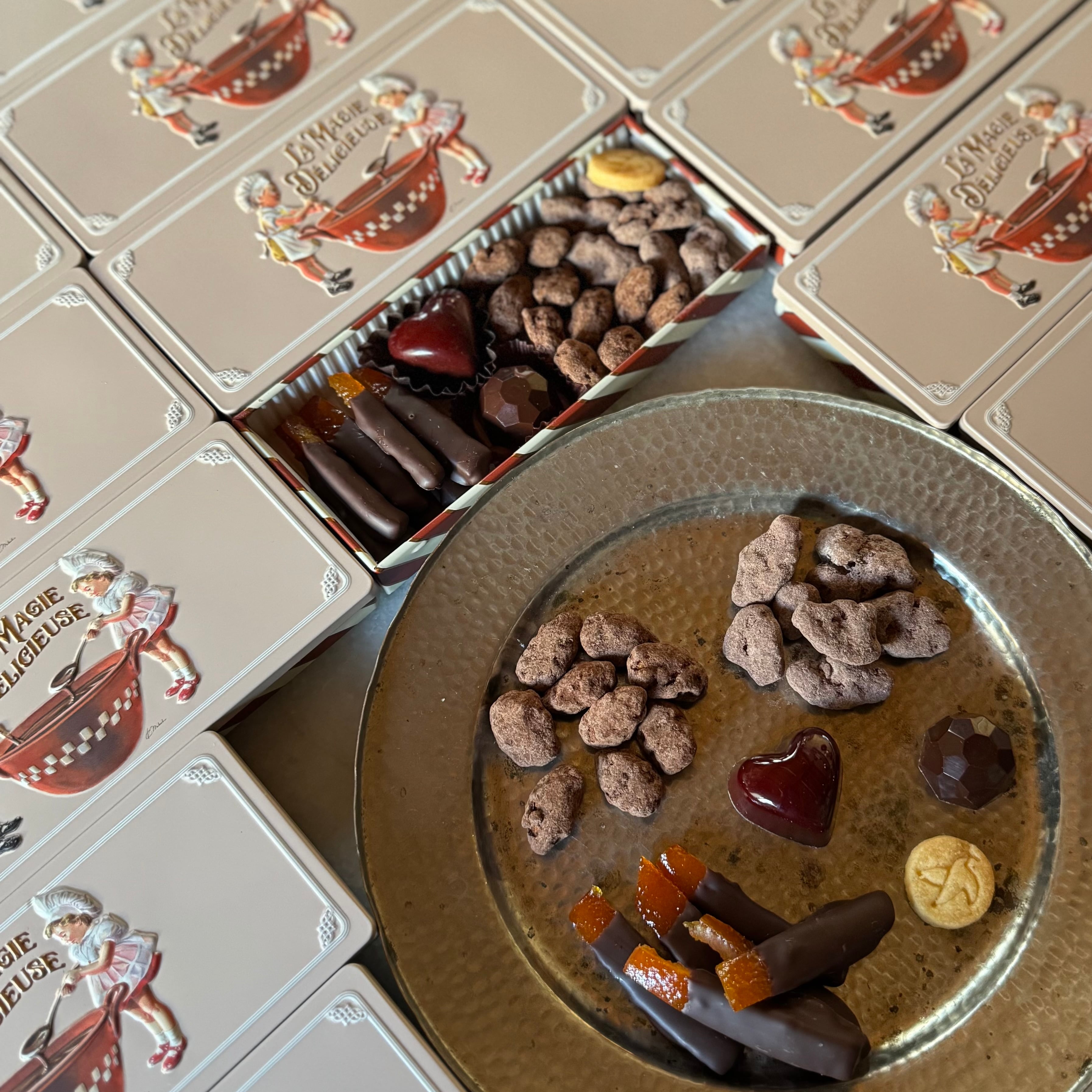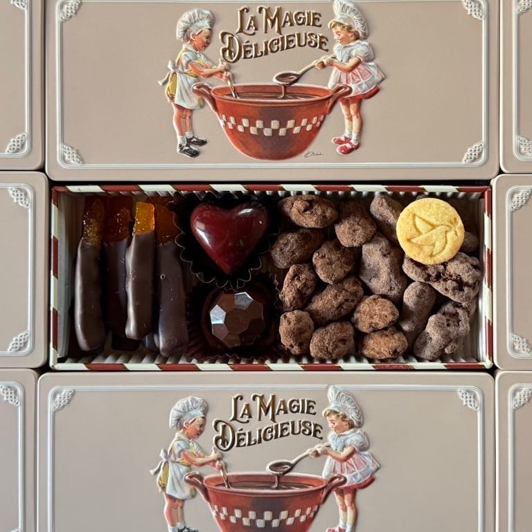 少しずつ色々食べたい!が叶うアソート缶になっています。かわいらしい板チョコデザインの缶に詰めて。
