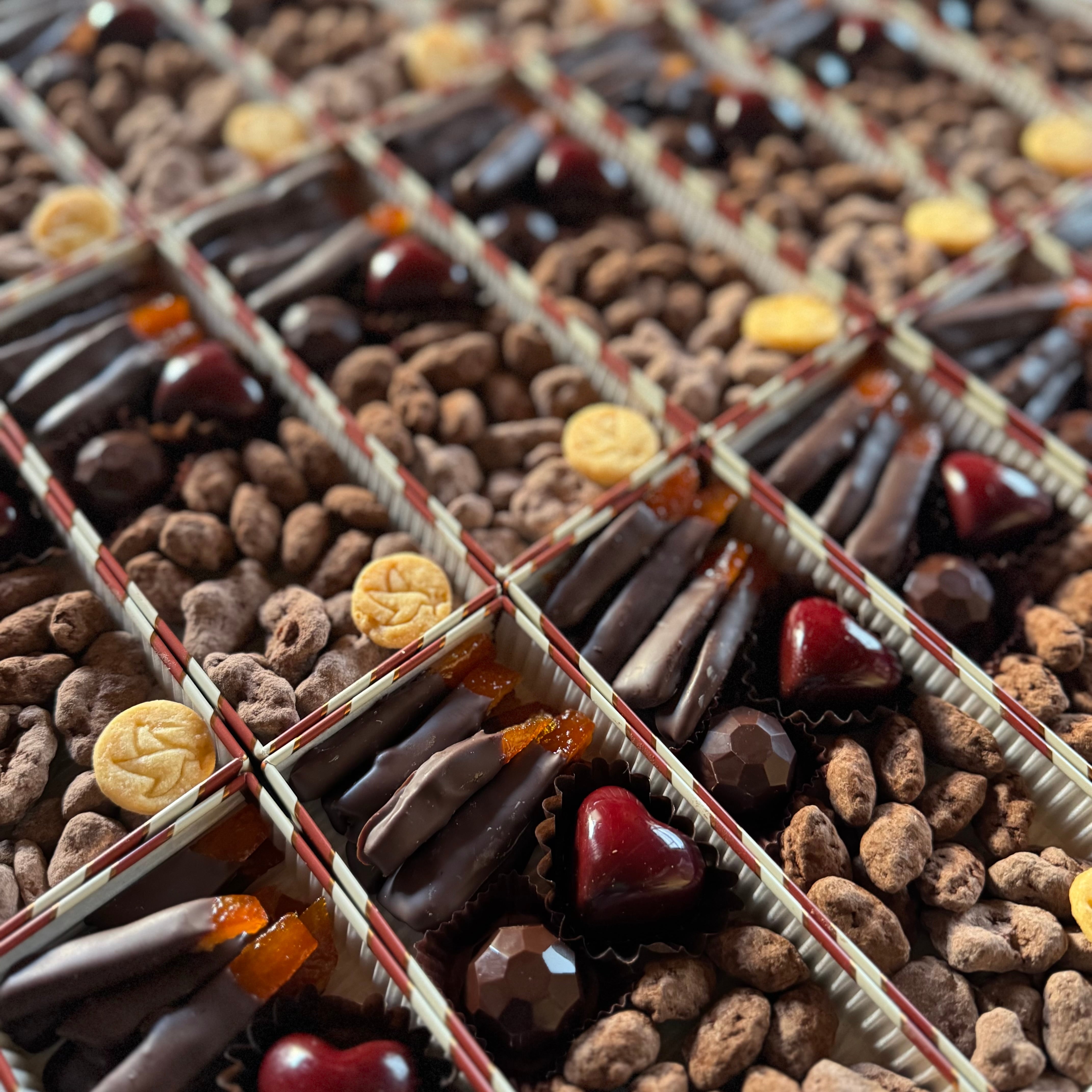 いよかんピールチョコは、じっくり煮詰めて糖度を上げて作った自家製のいよかんピールをビターなスイートチョコレートでコーティング。