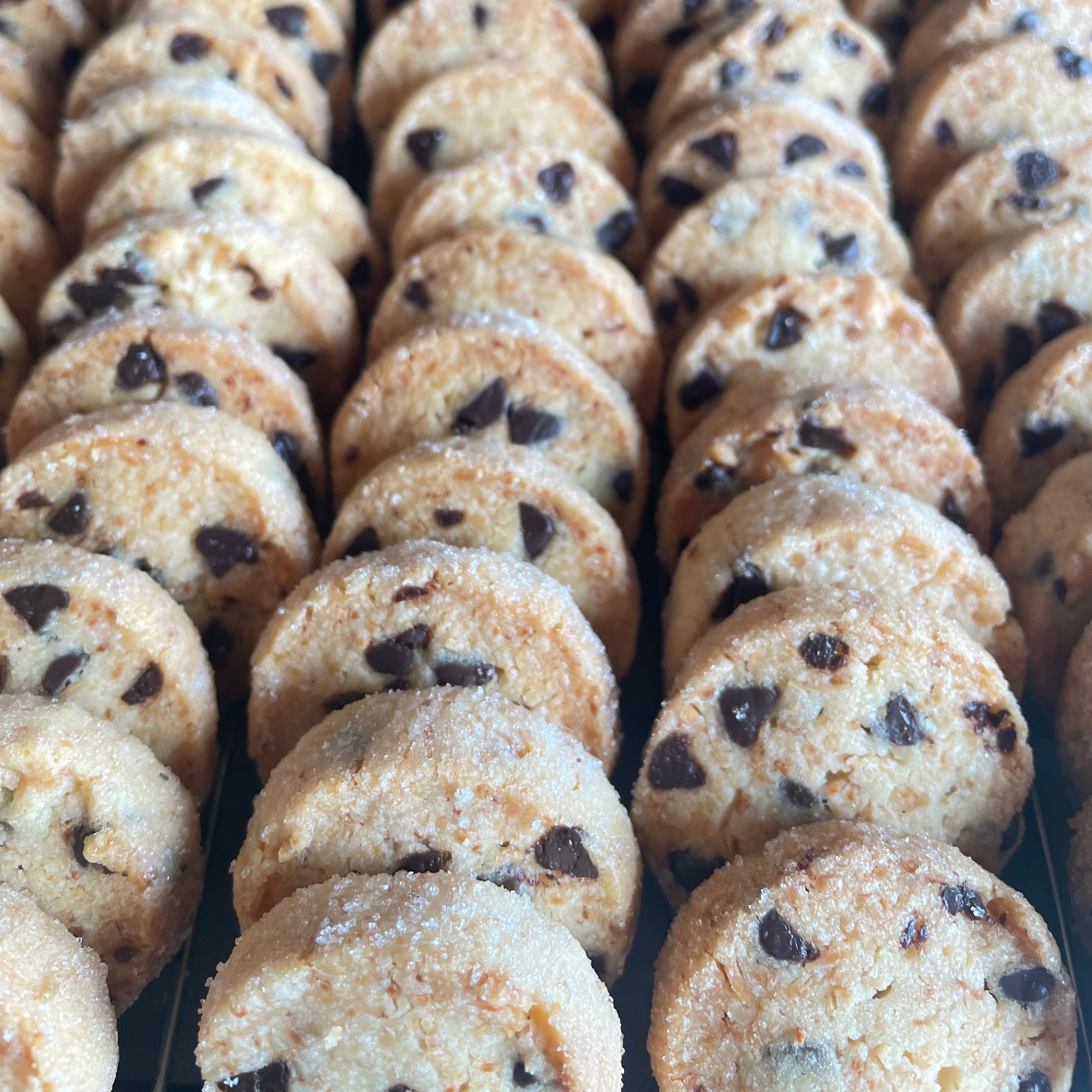 ローストしたココナッツの粉末とファイバー、たっぷりのチョコチップを混ぜ込んだココナッツとチョコのクッキー。