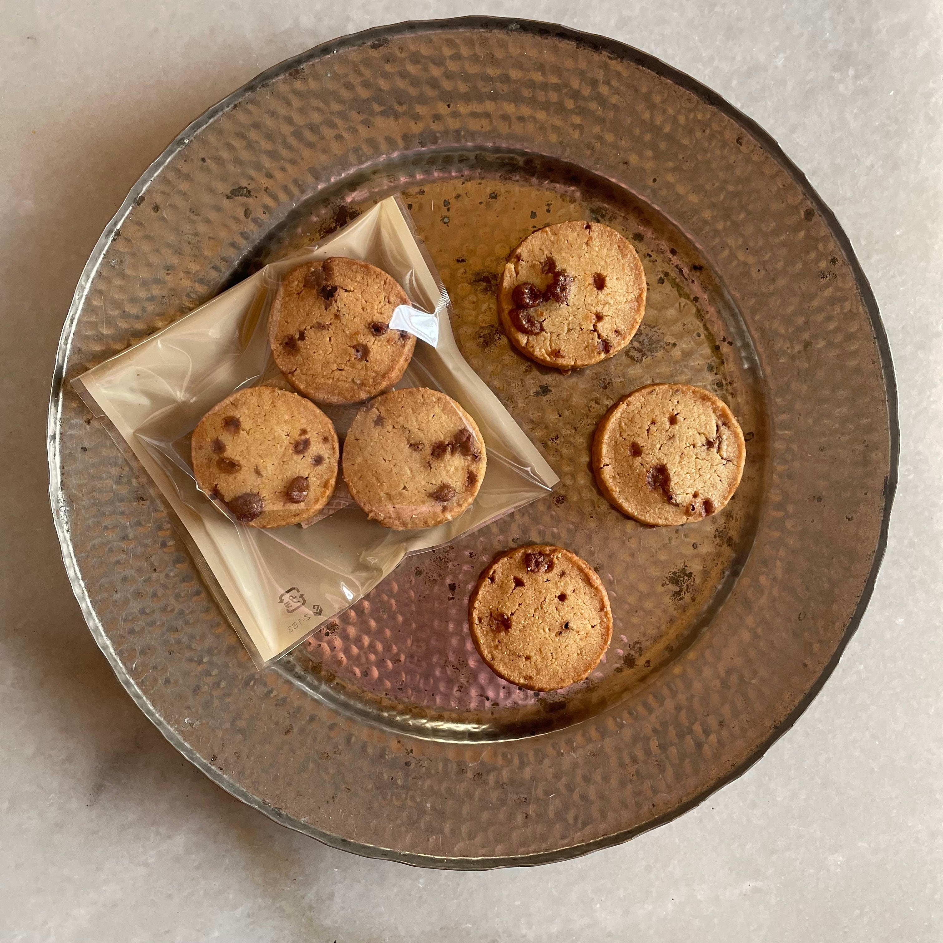 粒のままの黒糖も混ぜ込んでいるので、焼いてぷくぷく膨れた黒糖のしゃりっとした食感が楽しいクッキーです。
