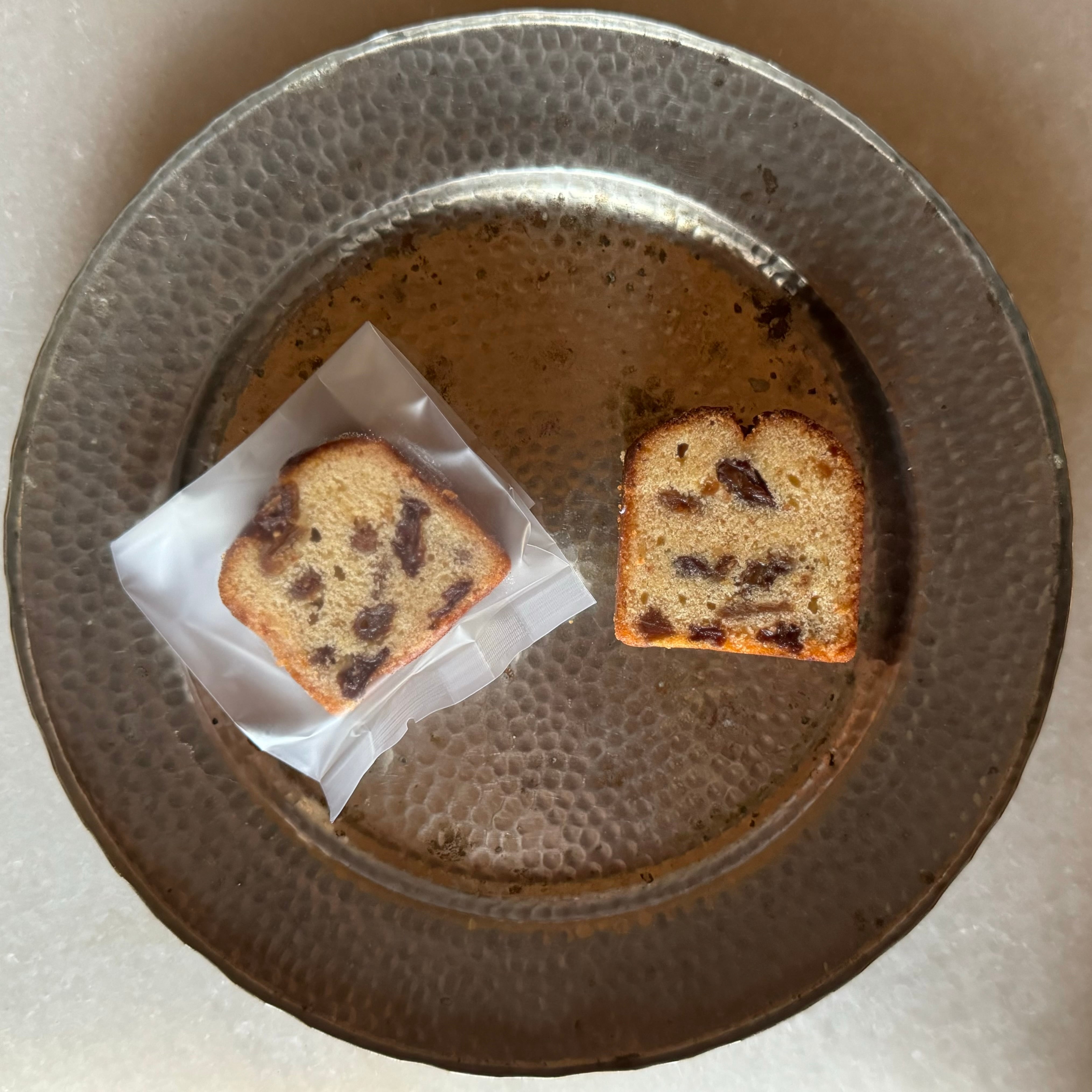 ブランデーに漬け込んだレーズン、ドライいちじくをたっぷり混ぜ込んで焼いた大人向けのフルーツケーキです。